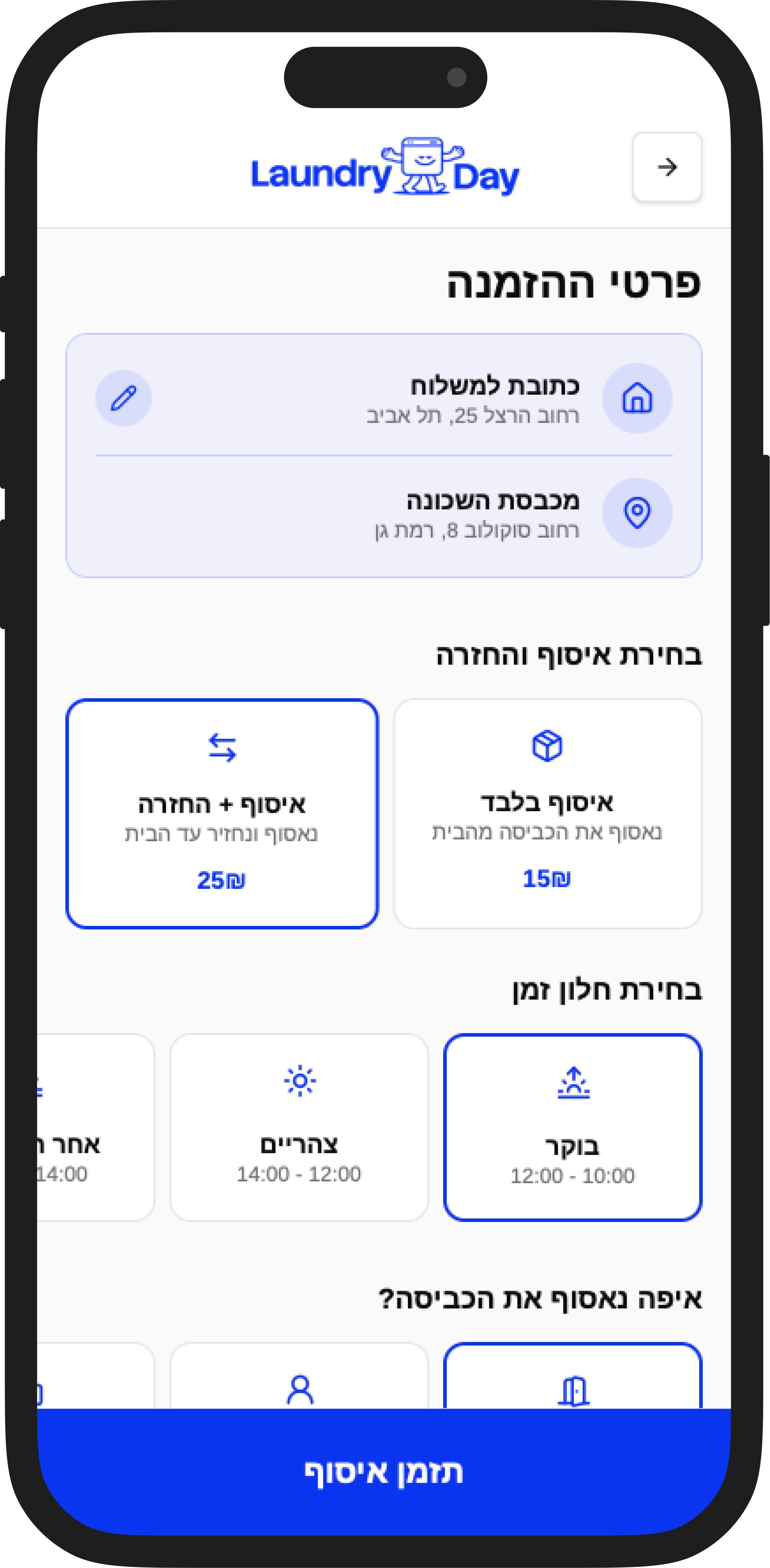 הזמנת איסוף ומשלוח בקלות