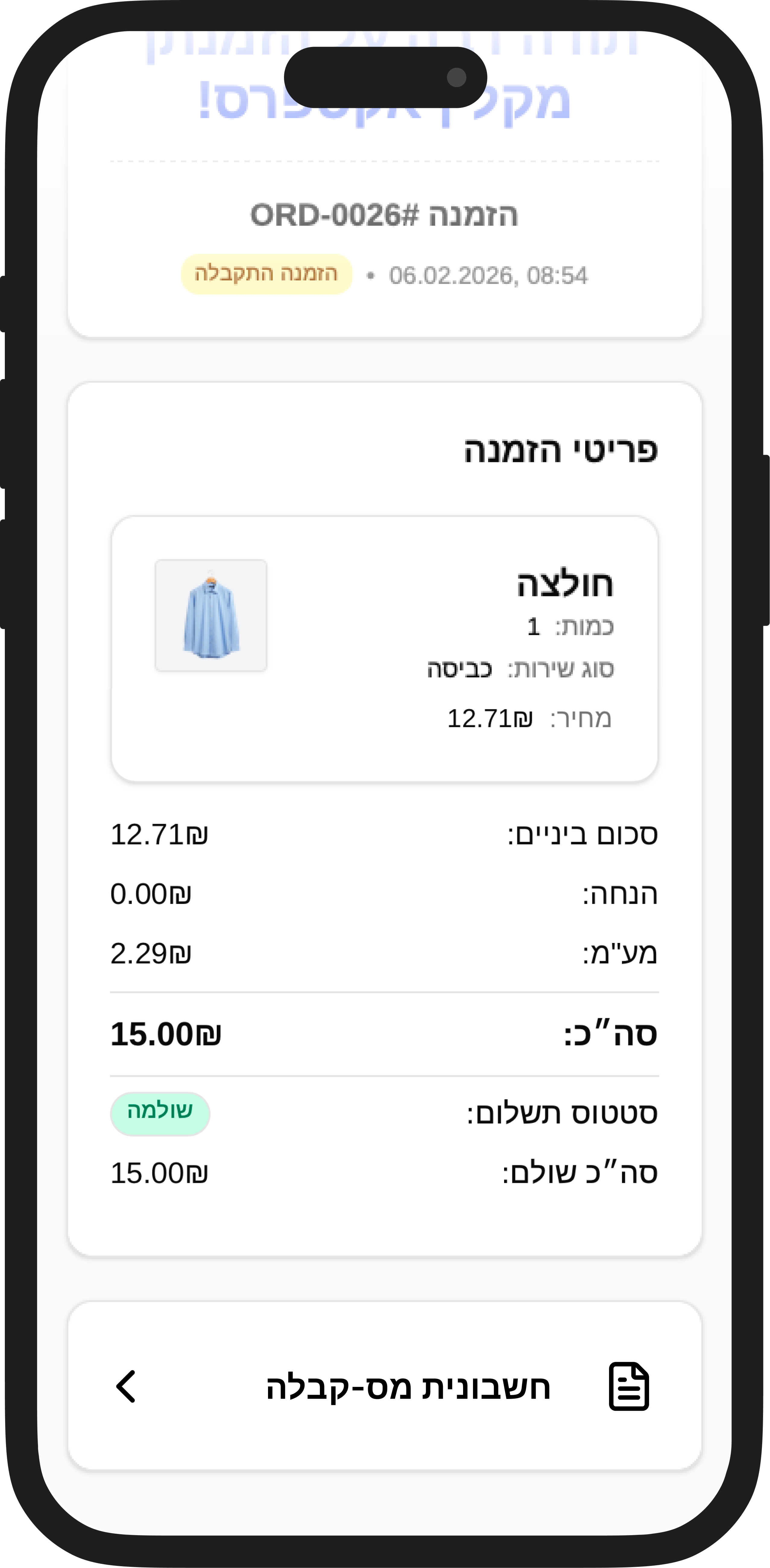 תשלום מאובטח ומהיר ישירות מהאפליקציה! בלי שיחה לקופה ובלי עיכובים, חוויה דיגיטלית חלקה ומלאה.